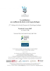 La médiation : au confluent du droit et de la psychologie. 3ème Colloque de la Société Française de Psychologie Juridique