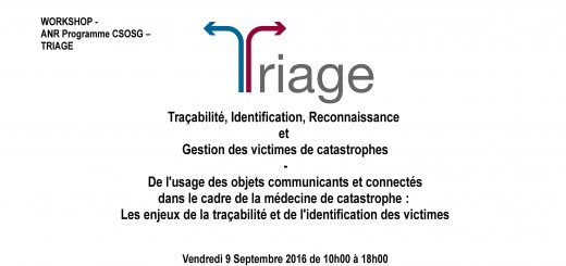 L’ANR TRIAGE (Traçabilité, Identification, Reconnaissance et Gestion des victimes de catastrophes) organise le 9 septembre 2016 à Lille un workshop sur le thème suivant : « De l’usage des objets communicants et connectés dans le...